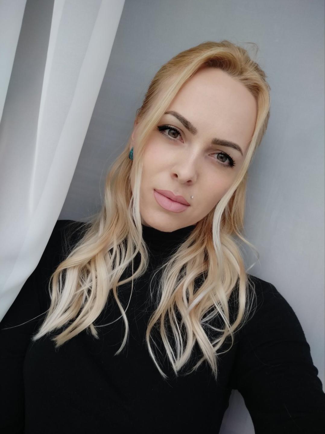 Fröhliche Verführerin, ich liebe Werbung und viel Aufmerksamkeit von Männern