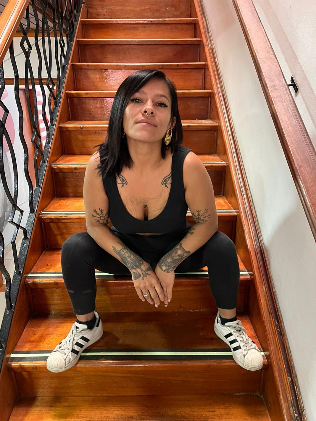 Uma mulher bonita, cheia de tatuagens